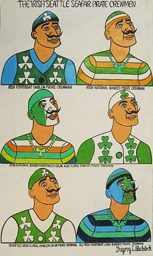 Image 1 of 1 THE "IRISH" SEATTLE SEAFAIR PIRATE CREWMEN, 2007 $7,000.00 Graphite, colored crayon and permanent marker on paper34.5 x 20.5 inches$7,000 Add To Cart Added! Graphite, colored crayon and permanent marker on paper34.5 x 20.5 inches$7,000